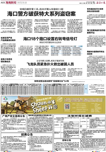 海南日报 海南新闻民生/社会 003 2016-08-151 2016年08月15日 星期一
