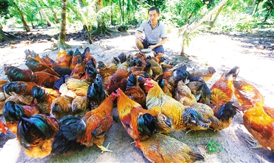 据了解,潭牛镇是文昌市养殖业重点乡镇,文昌鸡是潭牛镇支柱产业。去年全镇有饲养文昌鸡专业户230户,规模以上养殖孵化场26家,文昌鸡饲养量576万只,存栏量194万只,文昌鸡出栏量680万只,产值约2.8亿元。目前,镇政府投入资金50万元建成潭牛镇农产品展销大厅,通过与天猫生鲜、一号店等专业网上销售平台合作,为农户提供网络销售服务。
