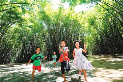 8月14日,屯昌南坤镇美鹤园村,竹林环绕着村庄,风景秀丽。该村距离屯昌——琼中高速公路羊榕线出口仅4公里,交通便利,环境优美,民风淳朴,是海南省中部拥有独特竹景的自然古村落之一。村里竹林茂密,竹景成为该村的一大景点,村民编制竹制品为主要经济收入之一。