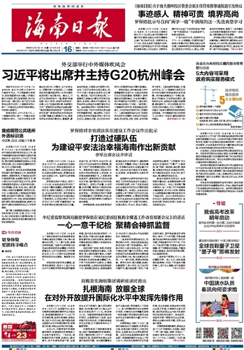 海南日报 头版 001 2016-08-161 2016年08月16日 星期二
