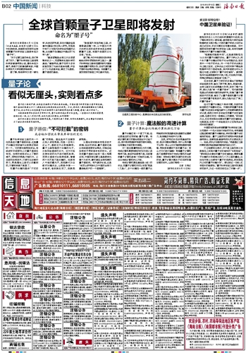 全球首颗量子卫星即将发射