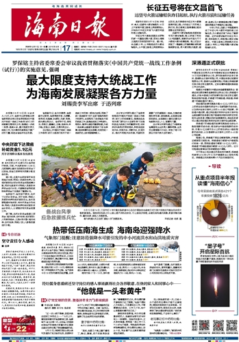 海南日报 头版 001 2016-08-171 2016年08月17日 星期三