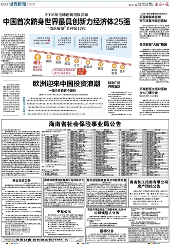 海南日报 世界新闻综合 011 2016-08-171 2016年08月17日 星期三