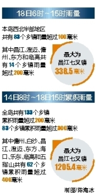 省国土资源厅与省气象局16时联合发布地质灾害气象风险预警,预计未来24小时内在昌江、白沙和五指山降雨诱发地质灾害的风险很高,为一级风险预警,其中特别注意白沙南开乡、元门乡,昌江七叉镇、王下乡,五指山水满乡、番阳镇、毛阳镇、通什镇。