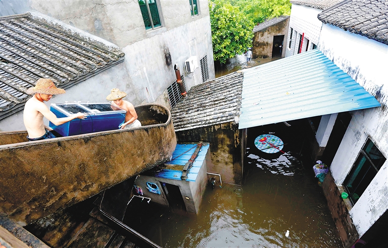 8月18日,儋州市各地都出现不同程度的水灾,在新州镇英均村,部分村民积极开展自救,将财产损失减少到最低程度。本报记者 陈元才 摄