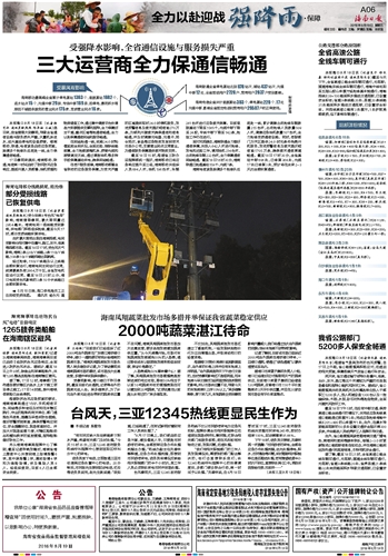 海南日报 全力以赴迎战强降雨·保障 006 2016-08-191 2016年08月19日 星期五