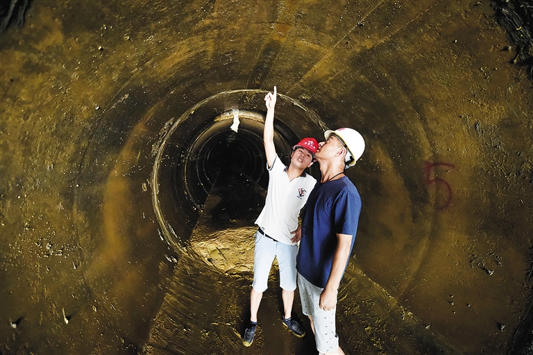 在合肥市蜀山区,记者进入到一条溢流管内看到,管道直径约达2米,如同一条巨大的地下通道。目前合肥不少地下枢纽管道都按照这一标准建设。