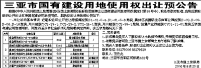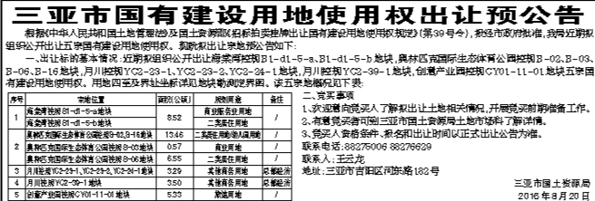 陵水黎族自治县国土资源局国有建设用地使用权挂牌出让公告