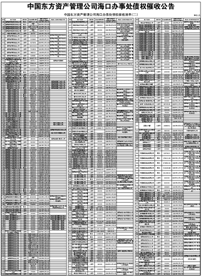 中国东方资产管理公司海口办事处债权催收公告