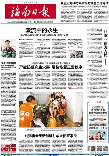 海南日报 头版 001 2016-08-201 2016年08月20日 星期六