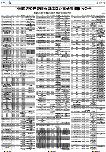 中国东方资产管理公司海口办事处债权催收公告