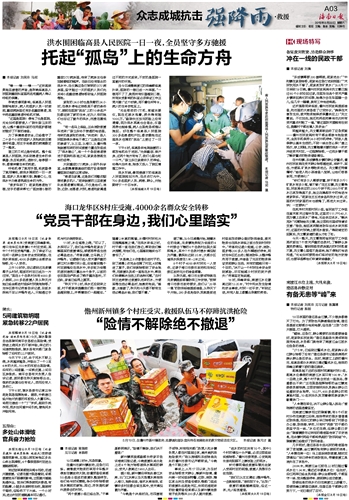 海南日报 全力以赴迎战强降雨·救援 003 2016-08-201 2016年08月20日 星期六