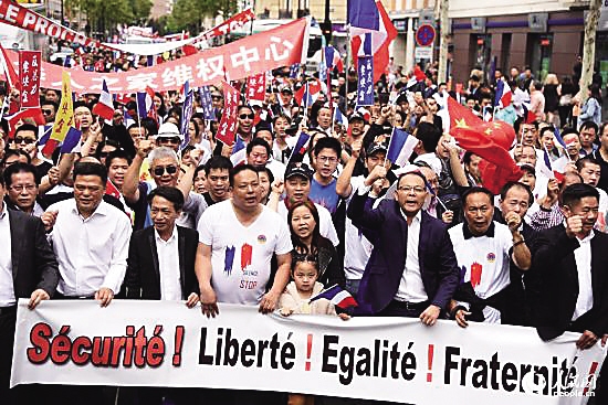 其二,淡化“唯华”色彩。尽管游行主要目的是呼吁保证华侨华人安全,但游行者们没有将华人社区与其他社群孤立开,而是发出了“要保障所有人安全”的口号,以争取其他同样受到治安恶化之苦的群体支持,同时强调华裔群体也是法国公民,法国政府应给予平等重视。