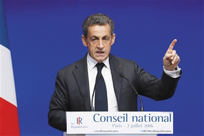 这张2016年7月2日拍摄的资料照片显示的是,法国前总统萨科齐在巴黎出席右翼反对党共和党全国委员会会议。 法国前总统萨科齐8月22日在推特上发布消息说,他已决定参加2017年法国总统大选初选。法国媒体当日还透露,为参加大选初选,萨科齐自22日起辞去共和党主席的职务。 新华社/法新