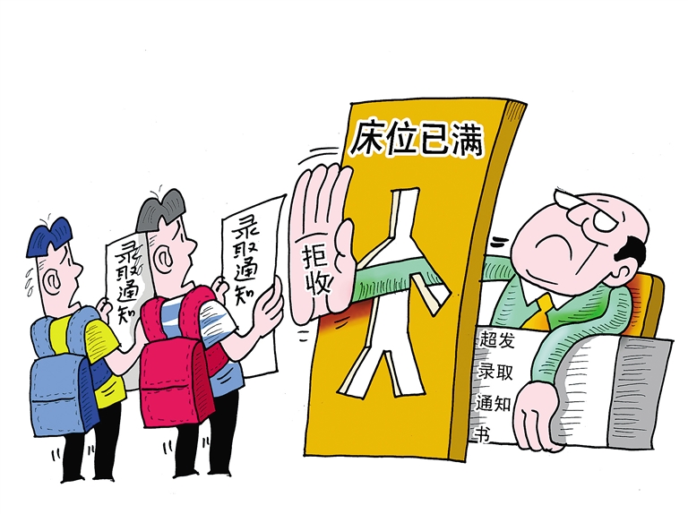 一则消息,折射出两处尴尬。一方面,明明拿到了录取通知书,却最终被拒之门外,对学生来说无疑是一大伤害。另一方面,明明只能容纳900名学生,却硬是发出2000份录取通知书,违规的举动下折射出的是中职学校招生的不易,反映的是社会对中职教育的认可度低。然而,矛盾之下,还是可以想方设法消除招生的尴尬,例如,招生前,校方可以提早与学生沟通、确认。当前,中职学校只有想方设法改善自身形象,类似的尴尬事件才不会一再发生。这正是: