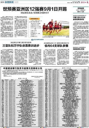海南日报 体育新闻综合 017 2016-08-251 2016年08月25日 星期四