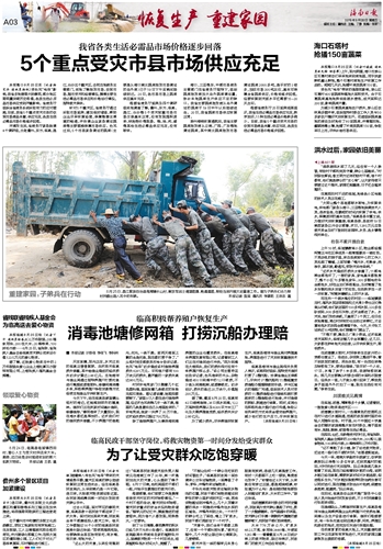 为减少石塔蔬菜基地农户损失,琼山区农林局多措并举,组织指导村委会工作人员与50多家农户搞好灾后恢复生产。迅速组织蔬菜基地的菜农及时抢收了60亩蔬菜,并清理田地、翻晒消毒土壤,抢播了叶菜类蔬菜150亩,争取早日上市,尽快补给市场供应。