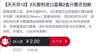 “1元就拼进口车厘子,限量7人团”,“红心火龙果19.9元一件”……看着诱人的图片和同样诱人的价格,你是不是也会动心?这正是当下朋友圈里逐渐升温的消费模式——拼团购物。因为价格便宜、商品种类多等原因,拼团受到很多网友的欢迎,也被称为团购2.0版。不过,日报妹发现拼团并非想象中的那么美好,低价背后有陷阱,拼团投诉多、纠纷时有发生。你拼团购物过吗?对于拼团你有啥想说的?