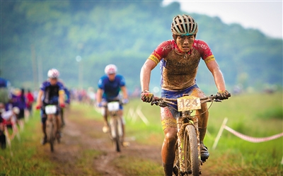 27日,2016海南国际旅游岛自行车联赛澄迈(文儒)站在澄迈县文儒镇举行。来自全国的300多名选手上演了一场田埂上的自行车赛。