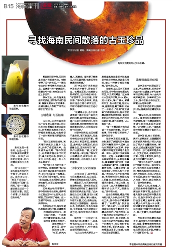 “美玉不会消亡”,只是暂时“沉睡”在民间。陈作发认为,与内地古玉面世背景不同,海南流落在民间的古玉,被人存放起来,当此人决定出手古玉时,就会有一批古玉流入市场,“然后,就没有然后了。”陈作发笑着说。