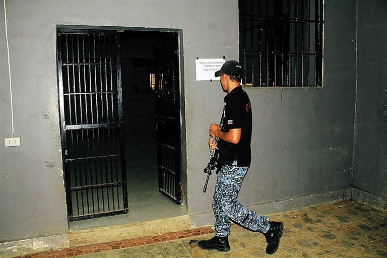 8月28日,在菲律宾马拉维市,一名狱警经过一间牢房。 菲律宾警方28日说,一伙武装分子27日在菲南部一所监狱实施劫狱行动,造成至少28名在押人员逃脱。菲南拉瑙省高级警官阿古斯丁·特略说,大约50名携带重装备的武装分子当地时间27日下午5时40分左右闯入位于南拉瑙省马拉维市一所监狱,释放了8名在押的反政府武装“毛特组织”成员,另有至少20名其他在押人员趁机越狱。 新华社/法新