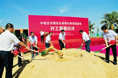 “中信北京国安足球俱乐部训练基地”项目位于澄迈县盈滨半岛,坐拥内外双海湾,景色迷人,具有得天独厚的自然和资源优势。项目是以国安足球训练基地为核心,体育文化为主题,旅游、培训为驱动力的多产业多功能综合型项目。项目计划打造先进的足球俱乐部共用集训基地、海南首家以体育文化为主题的旅游综合目的地,并积极推动足球顶级赛事的举办,引入知名足球培训学校和职业运动员康复中心。