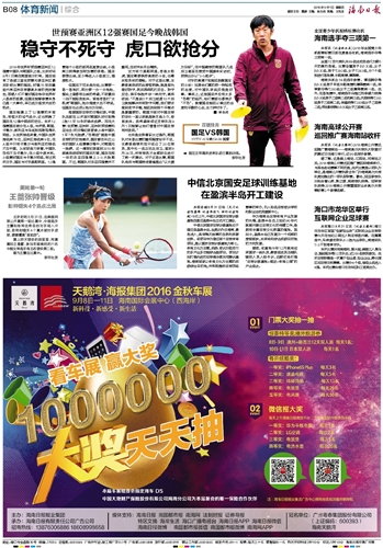 海南日报 体育新闻综合 016 2016-09-011 2016年09月01日 星期四