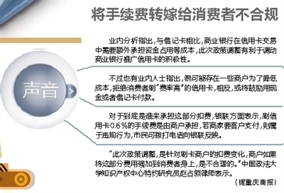 “新政策的实施,旨在为经营者减负、改善行业经营环境。”海口某商业银行信用卡中心负责人认为,借贷分离、信用卡刷卡费率将不再设置“封顶”、刷卡手续费取消商户行业分类定价并下调费率等一系列新政策的实施,相当于给商户减负,也将间接利好持卡人。