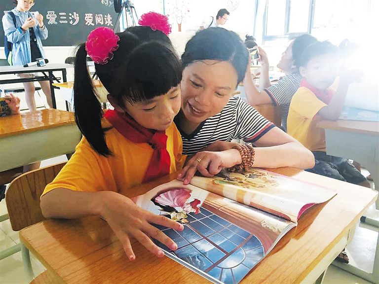 9月1日,三沙永兴岛永兴学校迎来第一个完整的开学年,老师在教学生阅读。 本报记者 叶媛媛 摄