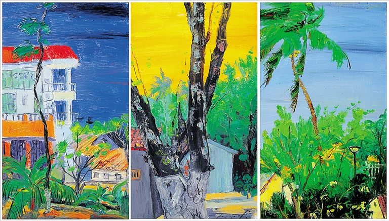 海南的“绿”还是自然融合的。生活在高楼林立、喧嚣噪杂的都市里久了,人们越来越渴望冲破钢筋水泥的桎梏,回归到绿树青草、鸟语花香的大自然里,良好的生态环境已经成为人们安居乐业和现代化城市建设不可缺少的要素。有别于一般城市主干道的绿化带相对狭窄、景观树种较为单一,海南的城市道路总是会让人们眼前一亮——笔直平坦的车道被宽阔的绿化带隔开,里面种植着上百种热带苗木和四季长开的各式花卉,高耸挺拔的大王棕,枝繁叶茂的重阳木,蓬勃伟岸的高山榕,还有骄艳似火的凤凰树、姹紫嫣红的三角梅、白黄相间的鸡蛋花,以及美人蕉、地被菊、蒲公英和各种不知名的灌木夹杂其中,高矮不一、错落有致,充满了自然野趣。这让人感到与旁边鳞次栉比的高楼大厦不仅没有丝毫突兀,反而显得交相辉映、相得益彰。这样“城在林中、道在绿中、人在景中”的新理念和新环境,正是城市建设者们返璞归真,与自然和谐共处的积极探索。