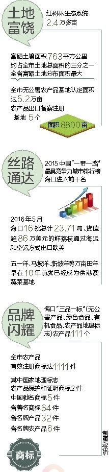 面对国家战略机遇,海口再次以开放的胸怀打造农业品牌,依托着西部火山富硒带、南部农业金丝带及东部万亩红树林生态核心区等三大农业黄金板块,将产自美丽田洋中的优质农产品推向全国各大城市,推向海内外,为世界奉上来自海口的热带珍品,逐渐形成“近覆东南亚,远覆美欧”的海外农产品版图,契合“丝路海口”定位。