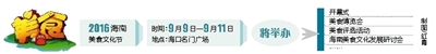 据介绍,2016海南美食文化节由海南省商务厅、海南省食品药品监督管理局支持,海南日报报业集团主办,海南日报报业集团全媒体运营中心承办,海南省酒店与餐饮行业协会协办,将以“品味中秋 美食海南”为主题,打造一个开放式、持久性、互动参与性的具有一定影响力和海南特色的美食盛宴。