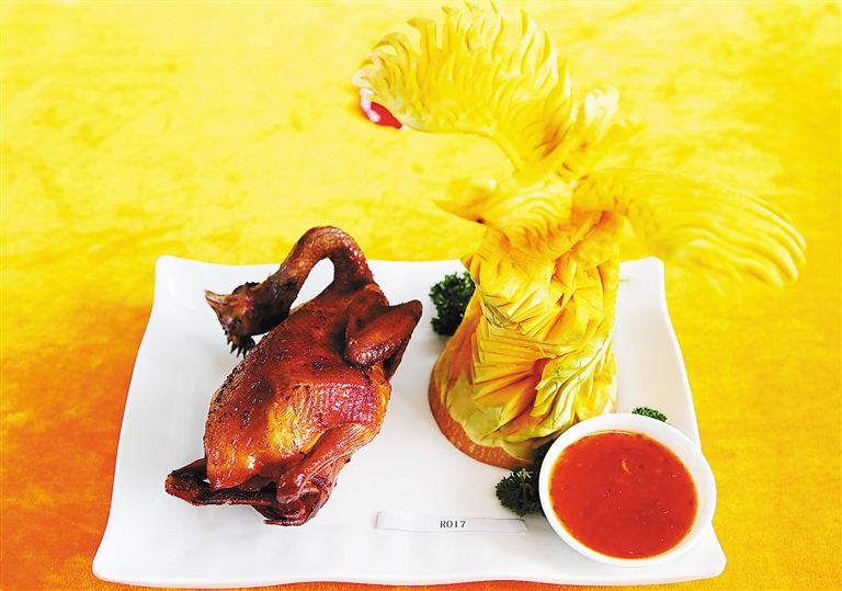 制作者高泽汤介绍,得益于儋州北岸地区火山岩地带水质好,农村散养走地小种鸡,是自然生态品种,主要吃稻谷、青草、杂虫生长,肉质好。儋州北岸脆皮鸡具有先天优势,