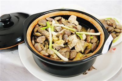 包豆炖土鸡,是儋州市中和镇高原村推出的一道原生态汤品,采用村里的土鸡为主材,宰杀斩块后,飞水下姜片和蒜蓉炒香,再用自种的荷包豆飞水去青味煲炖,边炖边撇去浮沫,加入适量盐味精炖至汤色略带奶白,豆子粉软。
