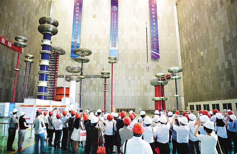 9月6日,人们在2016年“全国检验检测机构开放日”活动现场——西安高压电器研究院内观看“110千伏高压悬式绝缘子工频放电试验”演示。 当日,2016年“全国检验检测机构开放日”活动在陕西西安正式启动,我国获得资质认定的3万余家检验检测机构将全面向社会开放。 本次活动以“检验检测支撑中国制造2025”为主题,30家涉及智能输配电、机器人、北斗导航等领域的检验检测机构在活动现场进行了展示。按照统一部署,全国各地还将陆续开展一系列检验检测机构开放活动,为社会公众提供实地参观、技术培训、知识讲座、便民检测等服务。 新华社记者 邵瑞 摄