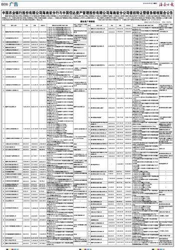 中国农业银行股份有限公司海南省分行与中国信达资产管理股份有限公司海南省分公司债权转让暨债务催收联合公告