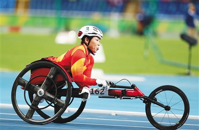 8日上午的田径赛场上,T53级的100米预赛正波澜不惊地进行。枪声响起,一个红色的身影连同轮椅如离弦之箭在一众选手中脱颖而出,一路领先,从起点到终点,场边的计时器定格在16秒19,新的世界纪录诞生了!