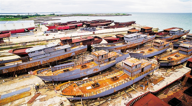 据介绍,这10艘钢质船是临高县渔民以“预抵押”贷款新模式订制的流刺网渔船。