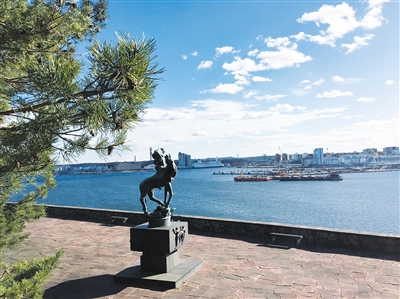 这座总占地面积5英亩的花园高踞于利丁岛的赫希鲁德悬崖边上,临崖以观,视野无限开阔——蔚蓝的利拉瓦塔海湾在崖下左右延伸,海湾左侧是斯德哥尔摩最繁华的港口之一瓦塔港,众多白色大型游轮游弋其中。右侧波罗的海一望无际。海湾对面,斯德哥尔摩市区极具特色的19世纪砖红浅黄墙体灰蓝梯形顶的建筑楼群沿岸撒开,间或出现高耸入云的铁灰教堂尖顶把彩色的地平线切割成跳跃的五线谱。