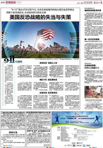 | 海南日报 世界新闻综合 009 2016-09-121 2016年09月12日 星期一 |