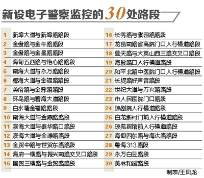 据了解,此前海口市已有40处路段安装电子警察监控。