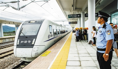 “从我们这坐中巴车去海口要三个半小时,去三亚也要一个半小时,以后坐高铁出门快多了,乘车环境也好。”板桥镇中沙村村民邢阳开车带妻子一起来看高铁站的开通,感叹以后交通出行方便多了。