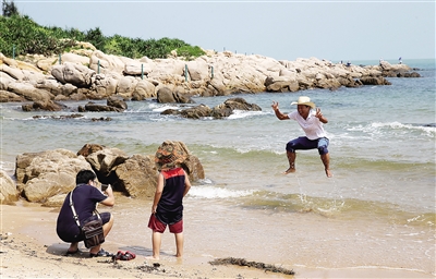 9月15日,三位外地游客在昌江棋子湾旅游风景区拍照留念。 中秋小长假,棋子湾旅游风景区迎来不少游客观光游览。 本报记者 苏晓杰 通讯员 王宗志 实习生 刘树勋 摄