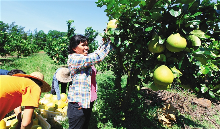 琼山区农林局局长李茂顺说,发展蜜柚产业已成为该区调整农业产业结构的重要抓手。琼山区正着手从规模化、标准化、品牌化等方面推动蜜柚产业发展,通过“公司+农户”“合作社+农户”等形式,带动农民发展蜜柚种植,计划到2017年底,全区蜜柚种植面积达2万亩,到2020年底达5万亩。