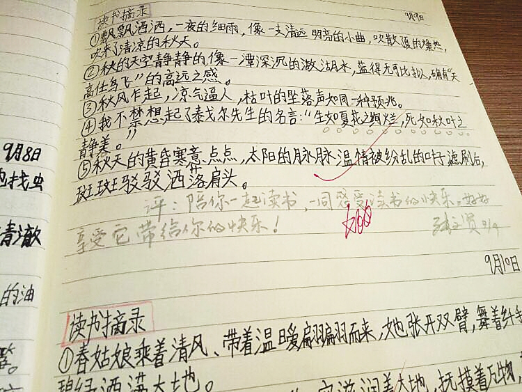 一个优秀的孩子,发展应该是多元的。而每一个孩子成功的背后有家长数不清日夜的付出,耗费自己的体力与智慧。开学两周半,翻阅张靖舒同学的综合笔记本,心里涌起一阵又一阵的感动。