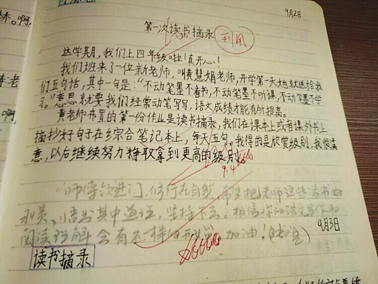 综合笔记本用了两周多时间,四(2)班已经有90%左右的家长能够做到签字,60%左右的家长开始给孩子写下一段段鼓励性的话语,孩子们也从对综合本的不适应逐渐走到喜欢。