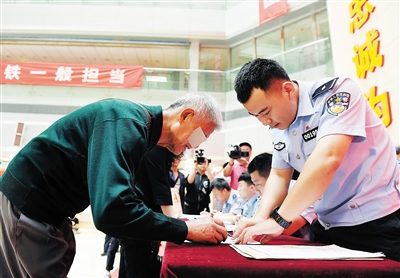 9月20日,被骗事主在新闻发布会现场办理返还手续。 当日,公安部、银监会、北京市公安局联合举行《电信网络新型违法犯罪案件冻结资金返还若干规定》颁布实施暨电信诈骗案件冻结资金返还仪式新闻发布会。中国银监会和公安部要求公安机关、银行业金融机构对已查明的电信诈骗冻结资金,及时返还人民群众,并明确银行业金融机构办理返还应当在三个工作日内办理完毕。 新华社发