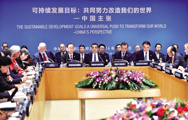 潘基文、汤姆森以及联合国开发计划署署长克拉克、环境署执行主任索尔海姆、粮农组织总干事格拉齐亚诺、教科文组织总干事博科娃,世界银行行长金墉、世界贸易组织总干事阿泽维多、国际货币基金组织总裁拉加德、世界卫生组织总干事陈冯富珍等先后发言,与会人士表示,2030年可持续发展议程执行一年来取得积极进展。中国在落实可持续发展目标、消除贫困、应对气候变化、加强南南合作等方面发挥了引领和创新作用,特别是在二十国集团框架内积极推进可持续发展议程。中国重视可持续发展不仅体现于政策宣示,更落实在行动上。中国力促经济增长,既造福本国人民,也有助于其他国家发展。各国际机构愿进一步密切对华合作,推广中国发展经验,共同应对挑战,推动中国和全球可持续发展。
