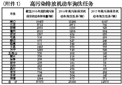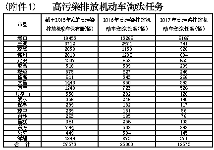 为贯彻落实生态立省战略,保持我省环境空气质量持续优良,保障公众健康,全面完成全省2016-2017年度黄标车淘汰任务。根据《中华人民共和国大气污染防治法》《大气污染防治行动计划》《海南省机动车排气污染防治规定》《海南省大气污染防治行动计划实施细则》的要求,结合我省实际,现就加强高污染排放机动车管理有关工作通知如下: