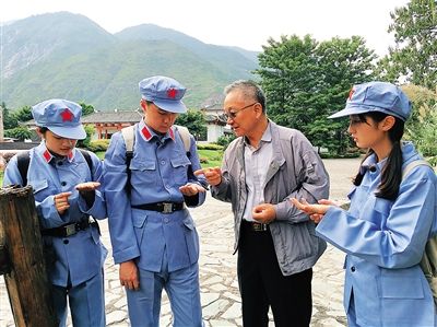 9月21日,《红色追寻》在四川石棉进行网络直播时,孙继先将军之子孙东宁(右二)在安顺场大渡河畔与三位主播进行“吃生米”的互动体验环节。孙继先将军1932年2月加入中国共产党,长征开始后调任红1军团第1师第1团第1营营长,先后参加了突破乌江、四渡赤水、巧渡金沙江等战役战斗。 为纪念红军长征胜利80周年,新华社推出大型主题网络直播栏目《红色追寻——三个年轻人的长征路》。《红色追寻》系列网络直播以三个年轻人亲历的视角,亲身的体验,结合长征期间重大历史事件,综合运用各种网络传播元素,再现红军80多年前的艰苦历程。 新华社记者 陈子夏 摄